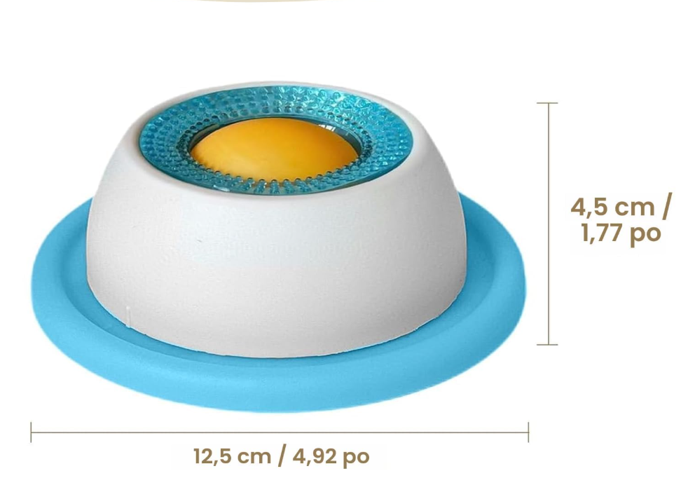 Made from tough, non-toxic rubber that's soft on teeth yet strong against aggressive chewers, the treat dispensing ball bounces unpredictably to encourage chasing, pawing, and problem-solving. Simply fill the treat dispensing ball with kibble, small treats, or peanut butter for endless engagement—perfect for slow feeding to prevent gulping and promote healthy digestion.